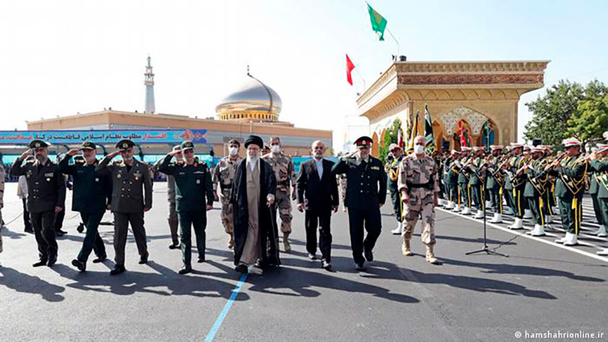 Ali Jamenei junto a militares en Teherán. Crédito: HAMSHAHRIONLINE.IR | copyright