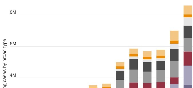 Destaca que la acumulación de casos pendientes ha aumentado de dos millones en el año fiscal 2010 a 8.8 millones en el año fiscal 2022.