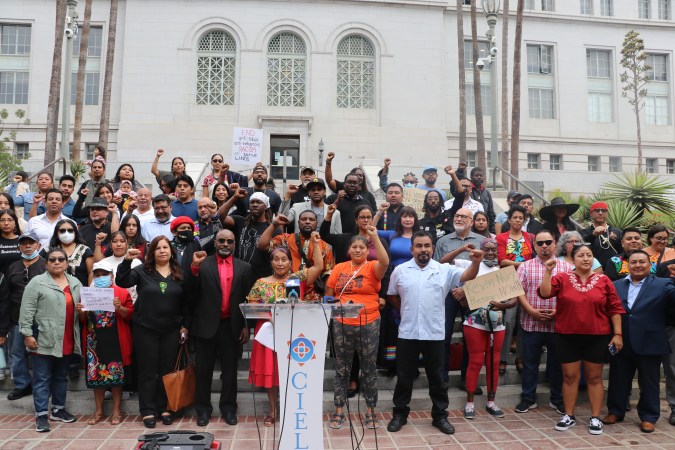 “¿Qué queremos?” , gritó Odilia Romero, directora ejecutiva de la organización Comunidades Indígenas en Liderazgo (CIELO), a las decenas de manifestantes congregados en las escalinatas del lado sur de la alcaldía de Los Ángeles.