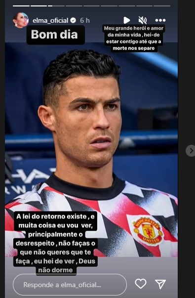 En su perfil de Instagram, Elma dejó una amenaza velada al equipo de su hermano, alude al “desprecio” que vive Cristiano en Manchester y dice que “la ley del retorno existe”.