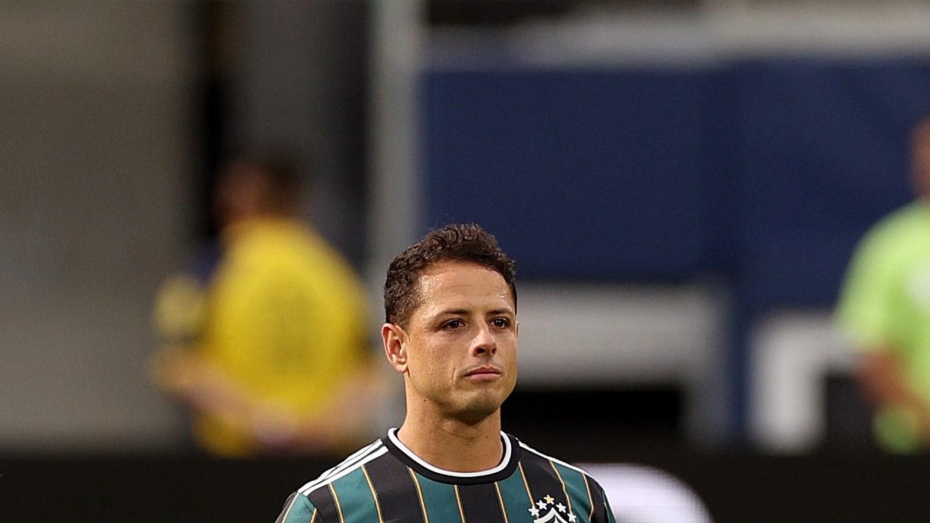 El delantero mexicano Javier Hernández (#14) de Los Angeles Galaxy antes del partido contra Guadalajara Chivas durante el Leagues Cup Showcase 2022. Crédito: Harry How | Getty Images