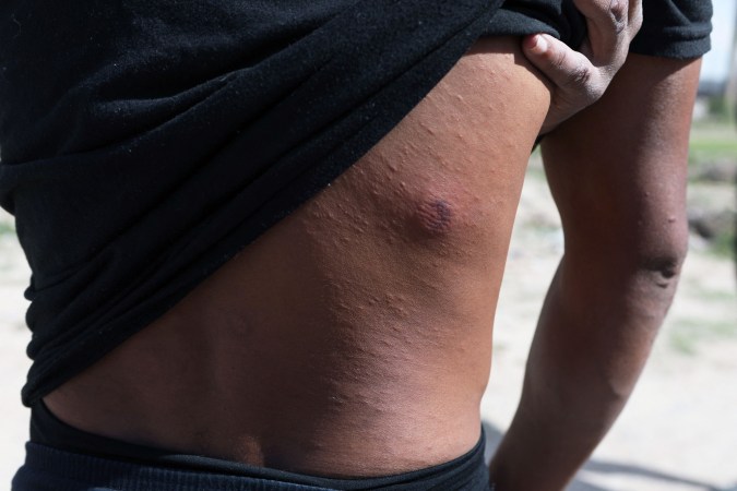 El venezolano mostró a la fotógrafa Herika Martínez una de las heridas que le dejó la bola disparada por los agentes migratorios.