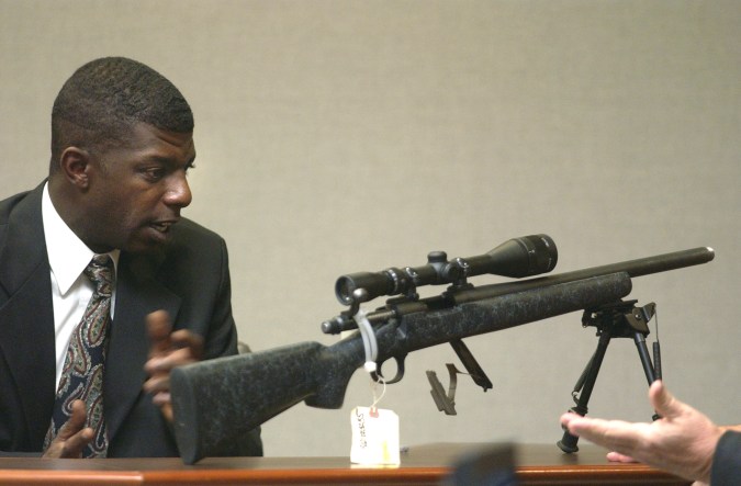 Durante su arresto, la policía encontró un rifle Bushmaster calibre .223, la versión civil del M-16, en el automóvil de Muhammad. Todas las víctimas de los francotiradores de DC habían sido alcanzadas por balas calibre .223.