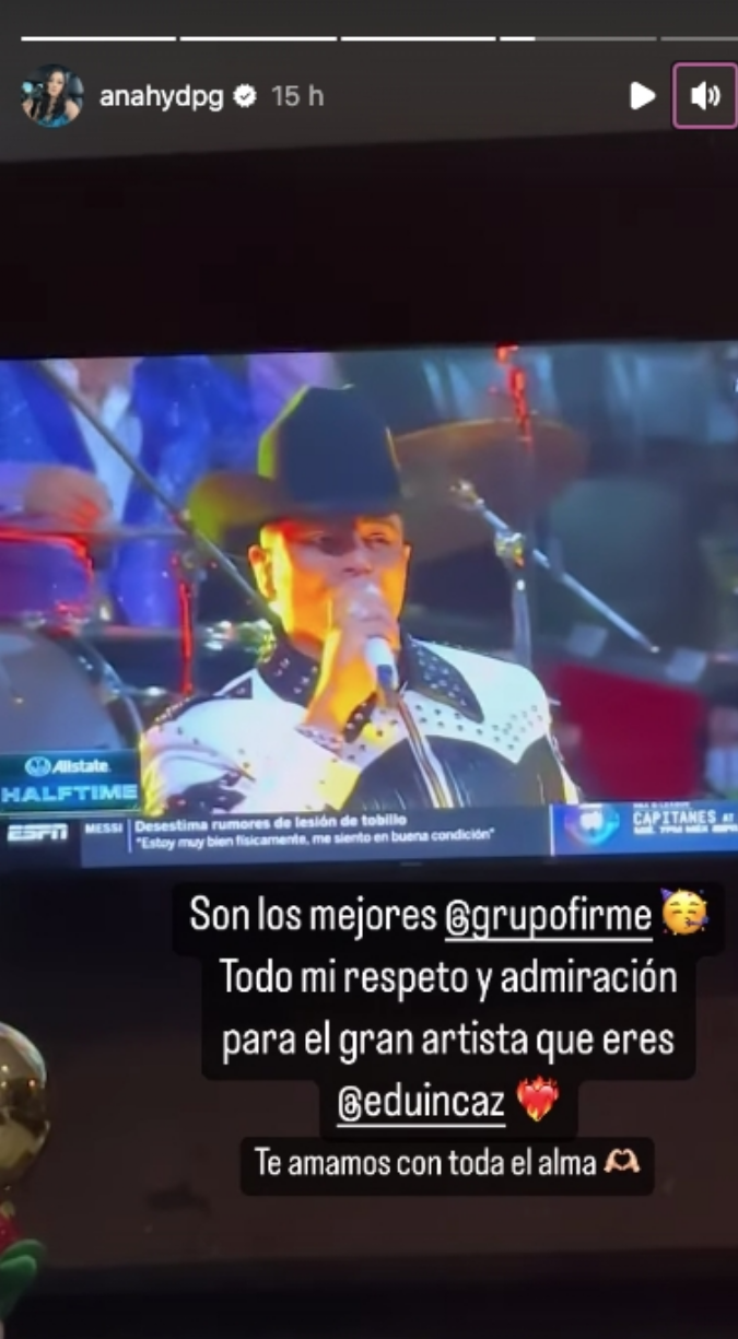 Pese a los comentarios negativos, Eduin Caz y compañía se presentaron en el medio tiempo de dicho partido en el Estadio Azteca, pero no se esperaban que los presentes al evento deportivo los iban a abuchear de principio a fin en su presentación, ante esta situación Daisy Anahy esposa del líder de Grupo Firme mostró el apoyo incondicional al padre de sus hijos.