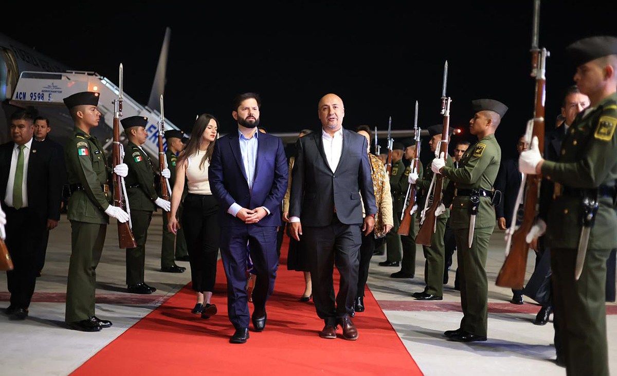 “Estamos muy contentos de estar en territorio mexicano y de poder realizar esta gira oficial con nuestra embajadora Beatriz Sánchez; el ministro de Economía, Nicolás Garu y la Ministra de Relaciones Exteriores, Antonia Urrejola”, dijo a medios Boric al bajar del avión de la Fuerza Aérea Chilena.