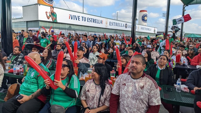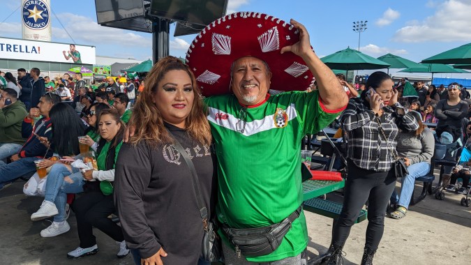 Como si fuera una celebración de fin de semana, cientos de personas se reunieron el miércoles por la mañana en el Santa Fe Spring Swapmeet para ver el juego de México contra Arabia Saudita.