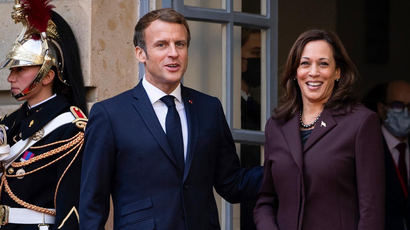 El presidente francés, Emmanuel Macron y la vicepresidenta de Estados Unidos, Kamala Harris. Crédito: SARAHBETH MANEY/THE NEW YORK TIMES/AP/PICTURE ALLIANCE | Deutsche Welle