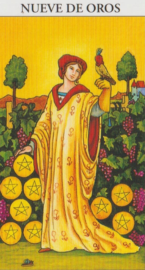 2. Nueve de Oros: Días para hacer lo que te dé la gana, disfrutarás de tus éxitos y tus ganancias, sentirás una satisfacción total por lo logrado en semanas pasadas, disfrútalo, tomate un descanso, compra eso que tantas ganas tienes de tener, te lo mereces después de haber sido tan trabajador y dedicado. Pero que todo lo anterior no te detenga, no te confíes y sigue trabajando igual, sigue utilizando la misma estrategia y seguirás creciendo. Comparte tu felicidad con las personas a las que quieres, no las descuides, procúralas y que sientan tu cercanía. Empezarás a ver belleza en todos lados y esto se debe a la gran felicidad y paz interior que sientes esta jornada. En la salud el Nueve de Oros te dice que estas muy vital y fuerte, estos días no tienes nada de qué preocuparte.