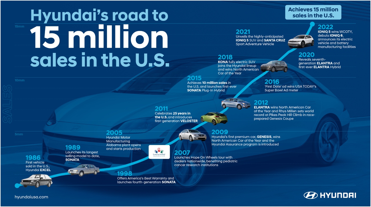 Hyundai reporta ventas de 15 millones de vehículos en Estados Unidos