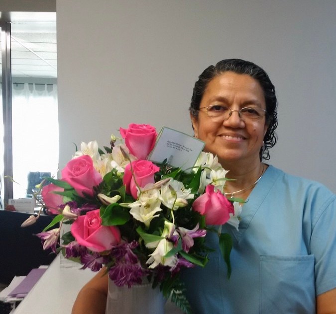 Teresa García con el retrato floral de su esposo José Ángel García. (Suministrada) Crédito: Donate Life | Cortesía