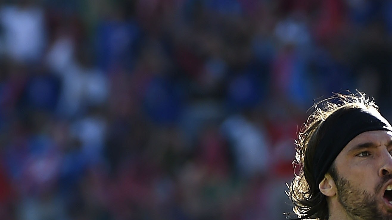 Mariano Pavone celebra uno de sus goles con Cruz Azul. Crédito: AFP / Getty Images
