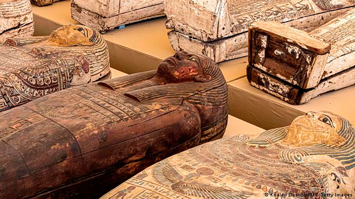 Los sarcófagos están hechos de madera y fueron cuidadosamente sellados para resistir el paso del tiempo. Crédito: KHALED KSOUKI | AFP / Getty Images