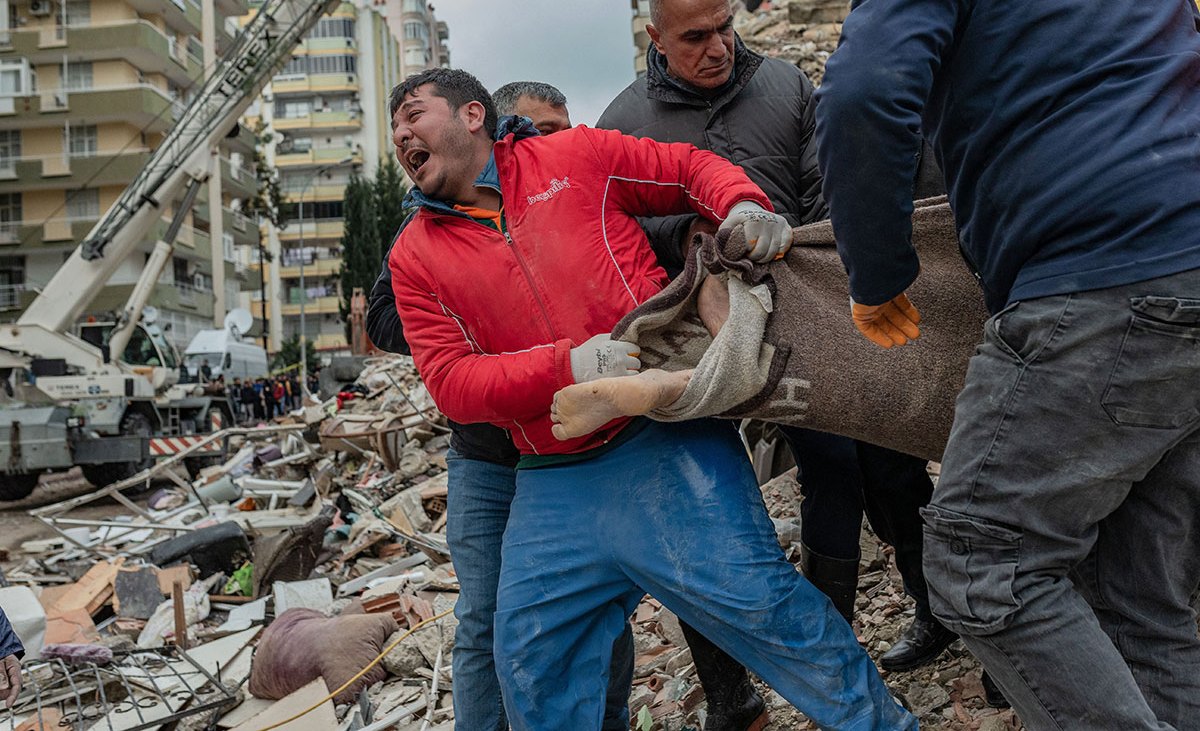 Reacción de un rescatista en Siria mientras sacan un cuerpo encontrado entre los escombros. Crédito: CAN EROK | AFP / Getty Images