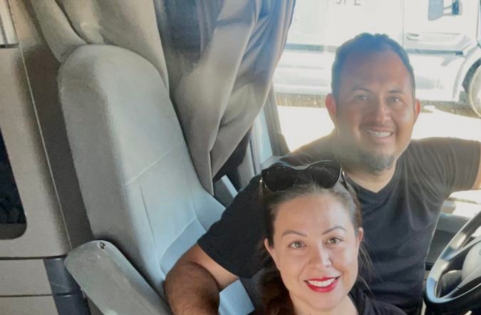 Carolina y Melvin son pareja en el hogar y en la carretera al conducir juntos un tráiler