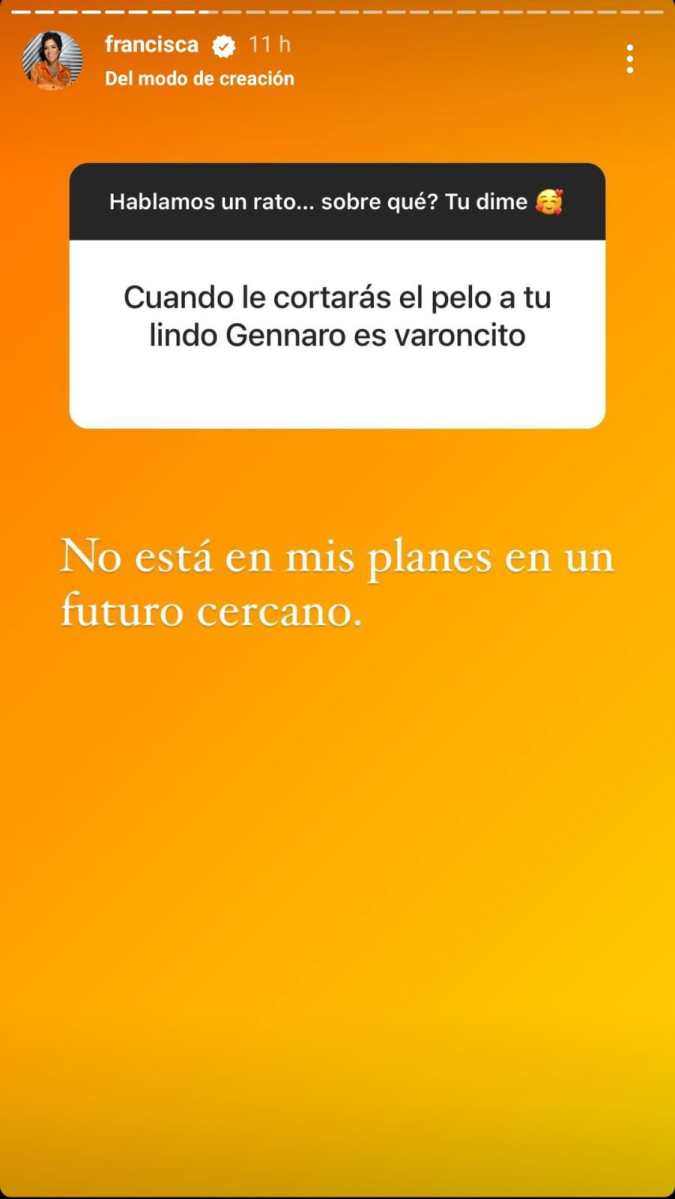 En una ronda de preguntas en sus historias de Instagram, Francisca fue consultada por una internauta sobre cuándo tiene previsto cortar el cabello a su pequeño.