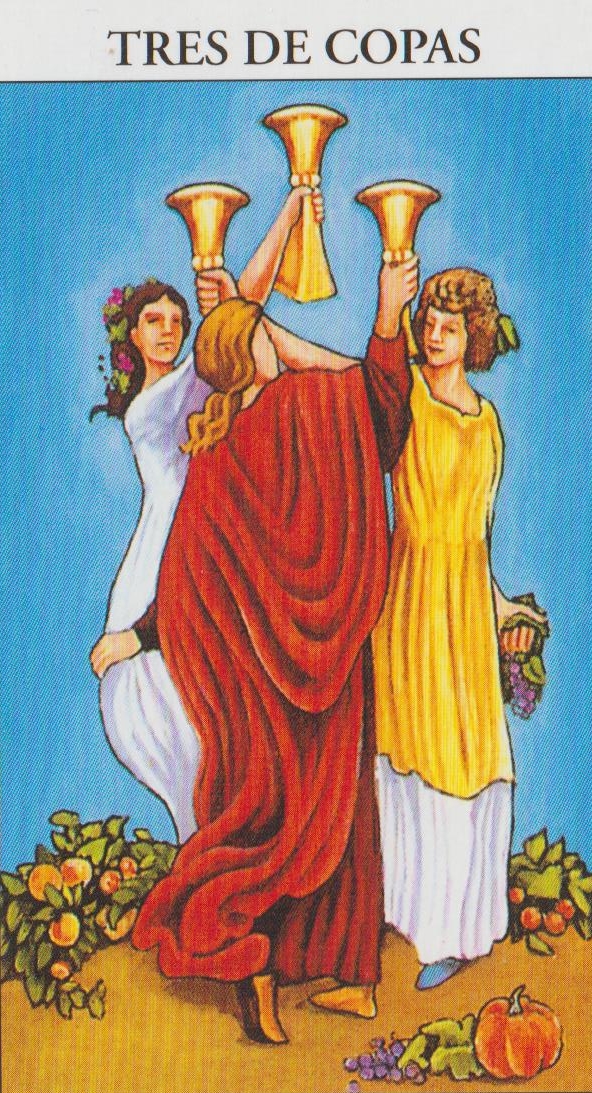 3. Tres de Copas: Esta semana es ideal para pedir matrimonio o para decir sí a una propuesta de matrimonio, así que no te sorprenda que una situación así te pase estos días. Es una jornada ideal para compartir con amigos, cualquier pretexto es perfecto para reunirse y festejar, así sea nada más festejar la vida. En el trabajo puedes tener varias juntas en donde puedes exponer nuevas posibilidades que se verán como una gran puerta a las necesidades que ahí hay que cubrir, no dudes, el crecimiento está por llegar, el esfuerzo habrá valido la pena, continúa avanzando que nadie te quiete del camino, que ninguna duda te sabotee lo avanzado ni lo que está a punto de llegar. La Divinidad estará presente en cada acto que venga desde el corazón, así que no actúes desde la tristeza o el rencor, esos sentimientos déjalos atrás y enfócate en lo nuevo. Pueden tratar de manipularte o puedes caer en un chantaje, ten cuidado o sufrirás una perdida material por creer que haces una buena acción.