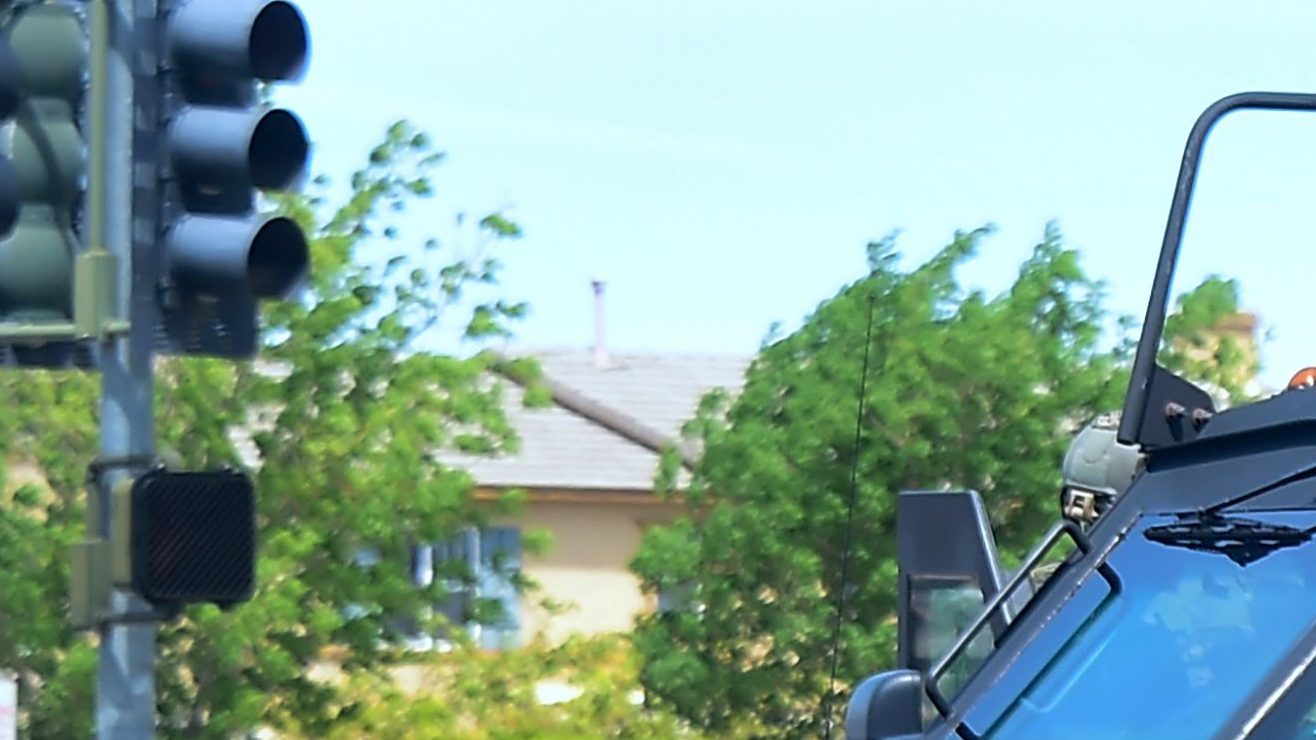 Las imágenes aéreas desde arriba del vecindario mostraron que los vehículos tácticos del Departamento de Policía de Los Ángeles habían estado trabajando para demoler parte de la casa. Hubo muchos daños extensos en el frente de la casa de un solo piso, incluidos al menos tres agujeros en el techo.