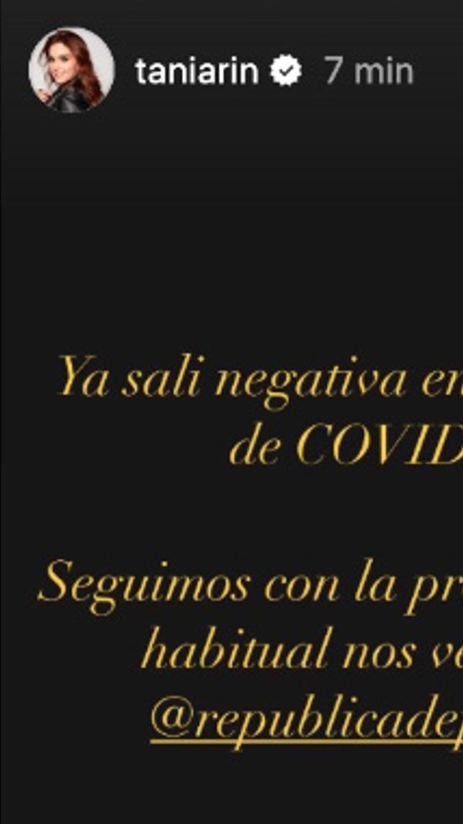Sin embargo, a unas horas de anunciar su diagnóstico, la presentadora contó que ya había dado negativo a su prueba y se mostró feliz porque al parecer, seguirá con sus actividades normales.