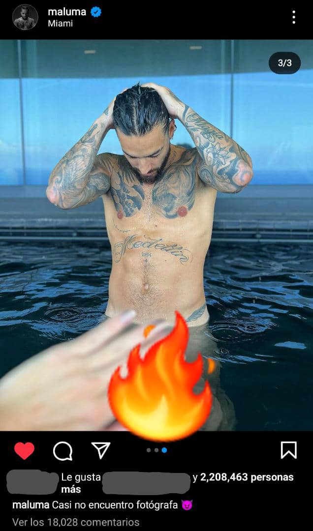El famoso cantante Maluma ha vuelto a dar de qué hablar en las redes sociales con su última publicación en Instagram. En ella, el artista colombiano se muestra sin ropa mientras nada en la piscina de su residencia, posando para el lente de su teléfono celular y mostrando su cuerpo escultural con músculos marcados y piel tatuada.