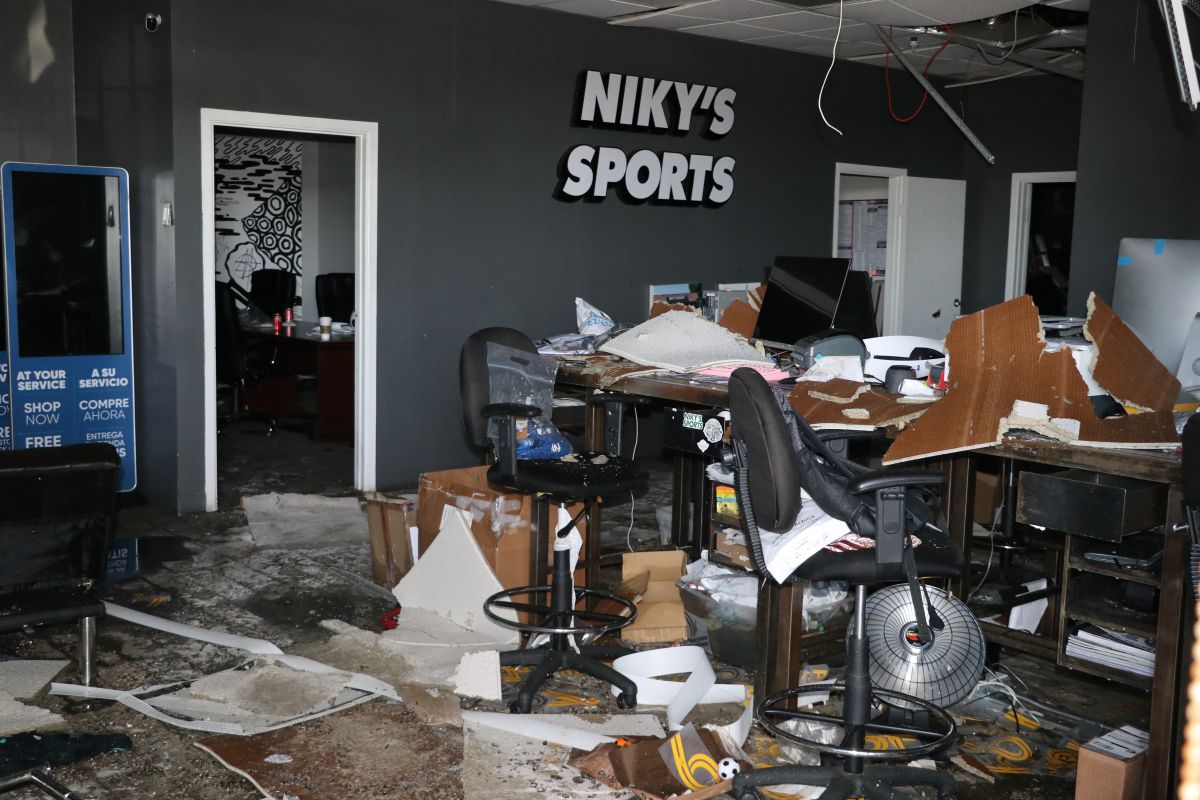 El impacto del torbellino ocurrido a las 11:20 de la mañana del miércoles, con vientos de hasta 110 millas por hora dañó el techo de la bodega donde tenía cientos de miles de dólares en ropa y artículos deportivos.