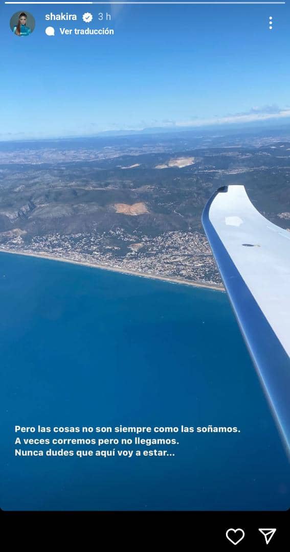 La cantante colombiana publicó un mensaje cargado de nostalgia desde el avión y con Barcelona de fondo: “Pero las cosas no son siempre como las soñamos, a veces corremos, pero no llegamos. Nunca dudes que aquí voy a estar”.
