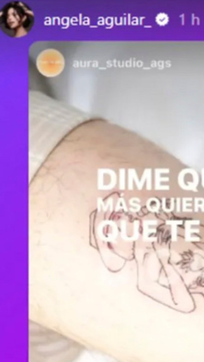 Ángela Aguilar mostró muy emocionada a sus seguidores de redes sociales, cómo un admirador suyo optó por tatuarse su silueta en su brazo