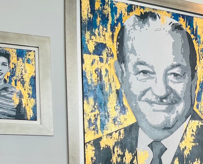 “Carlos (padre) es un gran ser humano, sencillo, íntegro y ha hecho una familia maravillosa”, dice el diputado frente a un oleo del empresario mayor que está montado justo arriba de una mesa donde hay fotos de sus nietos y de frente a otra figura: el presidente Andrés Manuel López Obrador en fotografía que observa la mesa y otro AMLO de peluche vigila la cocineta.