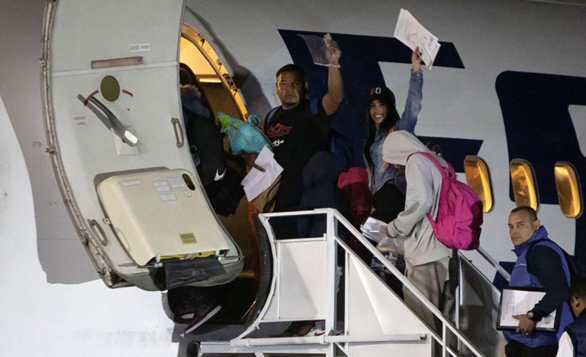Los migrantes partieron en avión desde la ciudad chilena de Arica.