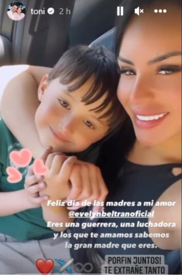 “Feliz Día de las Madres a mi amor Evelyn Beltrán. Eres una guerrera, una luchadora y los que te amamos sabemos la gran madre que eres”, escribió Toni Costa en sus historias de Instagram junto a una foto de protagonizada por Evelyn Beltrán y su hijo.