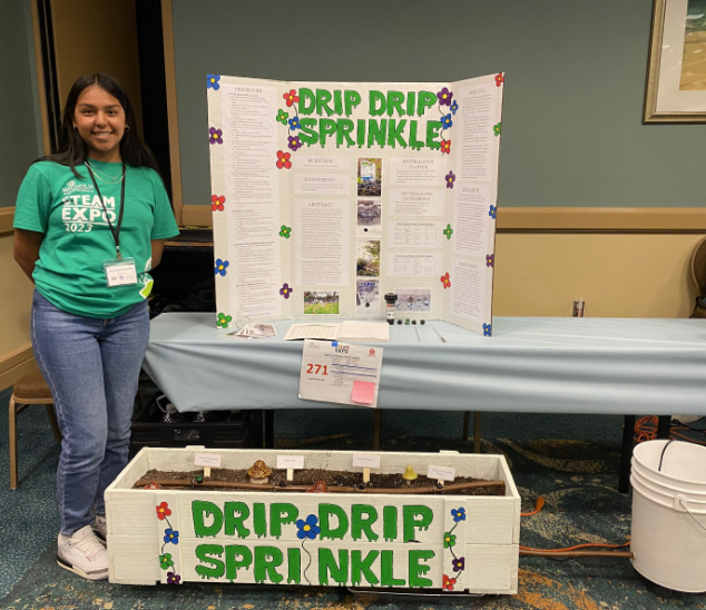 Kassandra Barrón, una estudiante de noveno grado en MSA-5, Los Lobos, cuyo proyecto fue inspirado por la actual sequía estatal, desarrolló un modelo casero bastante proactivo que ayudará a purificar el agua.