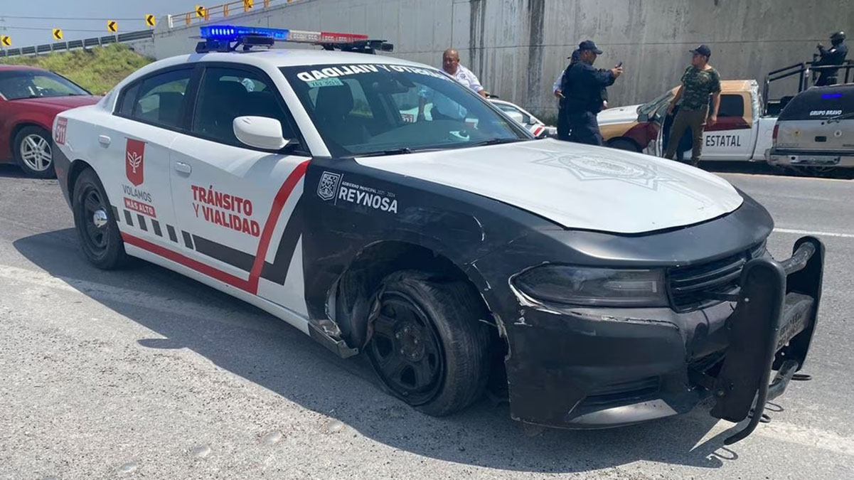 Tras conducir la patrulla robada por casi cinco kilómetros, el ladrón chocó contra dos unidades. Crédito: Tránsito Reynosa | Cortesía