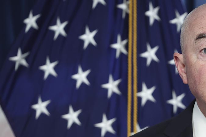 Alejandro Mayorkas, secretario del Departamento de Seguridad Nacional, es señalado por incumplir con la función que amerita el cargo que desempeña. Crédito: Anna Moneymaker | Getty Images