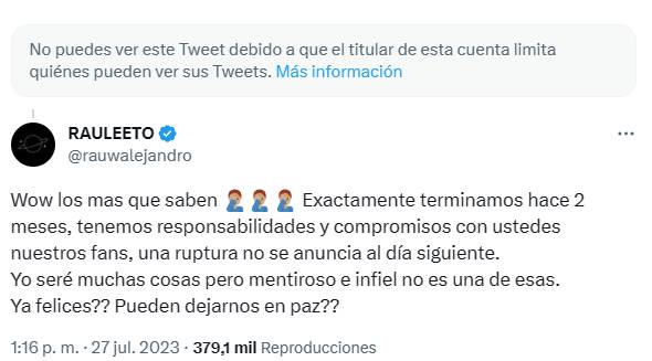 “Rauw Alejandro ha mentido en sus primeras declaraciones sobre sus declaraciones su ruptura con Rosalía”, escribió el usuario en redes sociales que tiene limitado quienes pueden ver su comentario.