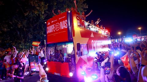 La Selección de España femenina está recorriendo las calles de Madrid celebrando con los miles de aficionados que se volcaron a la calle para festejar el título mundial