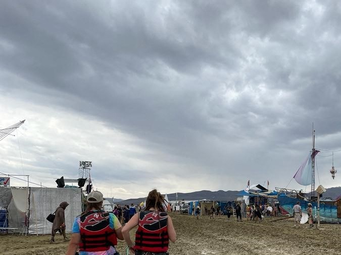 Ante la emergencia del sábado 2 de septiembre, los organizadores del festival pidieron a los asistentes tratar de resguardarse en algún lugar de la ciudad construida de manera temporal conocida como Black Rock City mientras pasaba la lluvia.