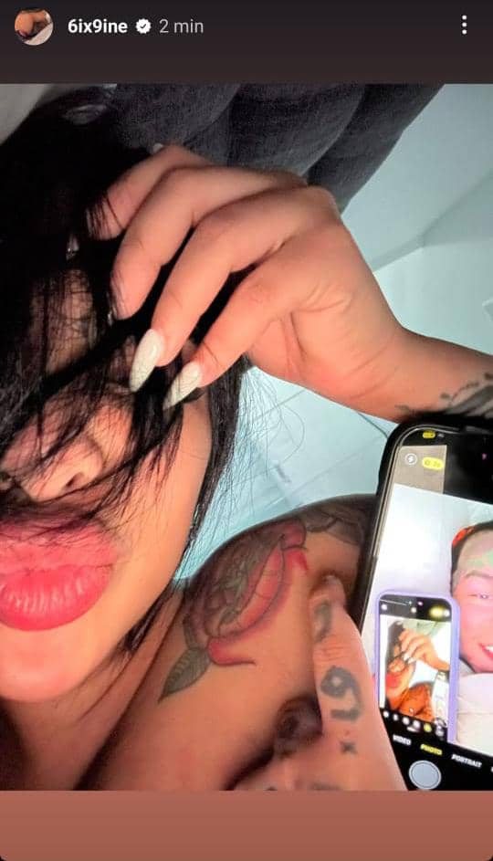 Tekashi 6ix9ine presume video acariciando a Yailin La Más Viral mientras ella lo abraza dormida