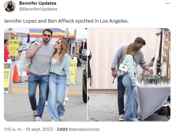 Jennifer López, la actual esposa de Affleck, no se ha pronunciado sobre las fotos él con su ex. Sin embargo, el domingo 17 de septiembre se dejaron ver caminando juntos por el Melrose Flea Market de Los Ángeles, California, lo que significaría que las fotos con Garner no fueron ningún problema.