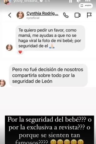 “Te quiero pedir un favor, como mamá, me ayudas a que no se haga viral la foto de mi bebé; por seguridad de el. Pero no fue decisión de nosotros compartirla sobre todo por la seguridad de León”, se lee en el mensaje.