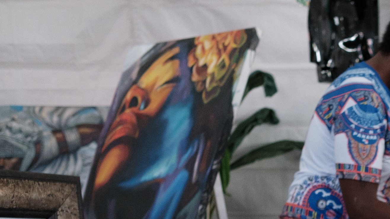 En el pabellón de arte, Amir Whitaker de Central, artista y cofundador de Afro Unidad, tenía una mesa con su trabajo que celebraba la diáspora de la comunidad afroamericana.