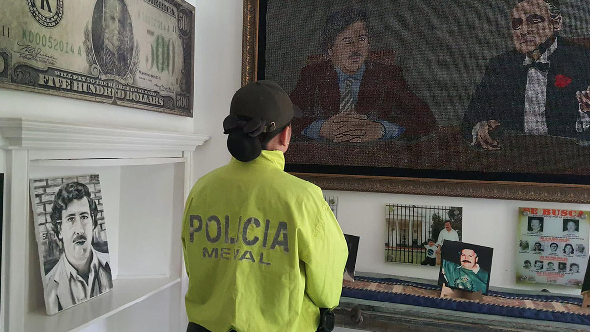 “Esta propiedad en la que actualmente son exhibidos artículos alusivos al exjefe del extinto cartel de Medellín fue afectada con medidas cautelares de suspensión del poder dispositivo, embargo y secuestro”, manifestó la directora especializada de Extinción del Derecho de Dominio de la Fiscalía, Liliana Patricia Donado.