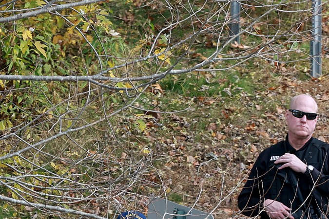 Un agente de la ley ayuda en la búsqueda del sospechoso Robert Card luego de un tiroteo masivo el 27 de octubre de 2023 en Maine. Crédito: Joe Raedle | Getty Images