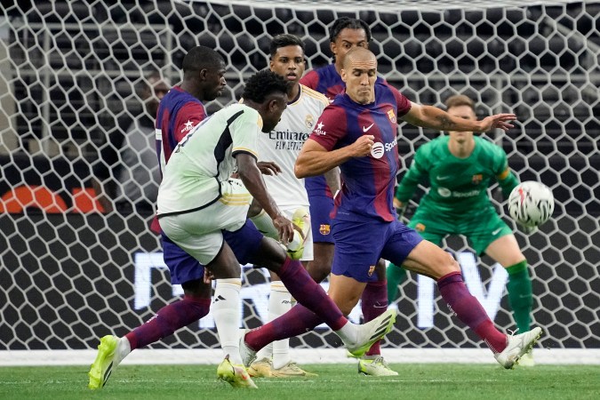 “Este año cambiaron el sistema, el dibujo. Al jugar con (Jude) Bellingham con más libertad, más de media punta juegan con dos puntas y no con tres. En este caso Vinicius Junior y Rodrygo sí, se desmarcan muchísimo en profundidad. Esto es lo que hay que vigilar”, analizó el DT azulgrana.