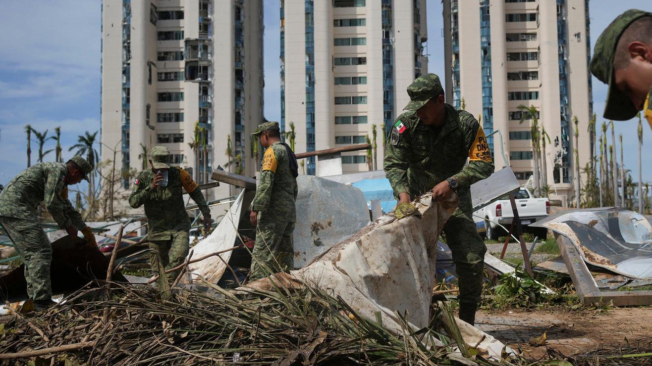 Soldados recogen escombros de las calles de Acapulco, un balneario devastado por el huracán Otis Crédito: Deutsche Welle