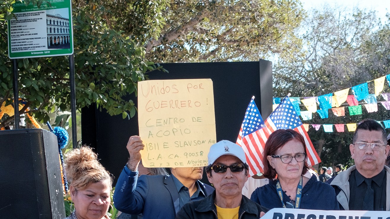 Durante la conferencia de prensa realizada ayer en la Placita Olvera, Aniceto Polanco, originario de Acapulco pero residente de Los Ángeles por más de 20 años, le pidió ayuda al presidente Biden.