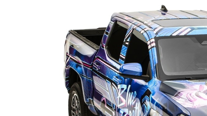 “Añadimos accesorios y envolvimos nuestra nueva Tacoma 2024 para la gira promocional y el estreno de una manera que evoca el traje del Blue Beetle”, comenta Chris Ogg, analista de comunicación y marketing de vehículos de Toyota.