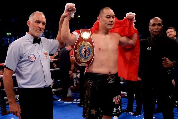 Zhilei Zhang es el campeón interino de la OMB de peso pesado. Foto: Stephen Pond/Getty Images.