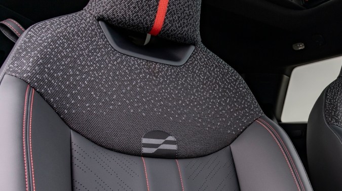Los asientos del JCW fusionan el cuero sintético con costuras en tono rojo y un tejido de punto multicolor en la zona de los hombros para un aspecto que denota la incorporación de elementos deportivos. Finalmente, la combinación de negro y rojo se extiende al tejido 2D que reviste el interior de la puerta y el tablero. En el lado del pasajero, se destaca un patrón específico de JCW, presentado en forma de bandera a cuadros.