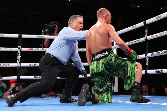 En un duelo reñido y que contó con la presencia del Gallo Estrada en primera fila, el estadounidense dominó a Sunny Edwards y en el noveno conectó un recto de izquierda en el rostro que hizo caer rodilla en tierra a su rival, pero, a pesar de que sobrevivió el conteo, el entrenador Grant Smith le informó al árbitro que el británico no podía seguir peleando y se detuvo la pelea.