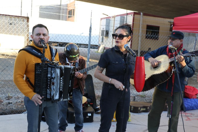 El ritmo de la música y las canciones de protesta de los Jornaleros del Norte retumbaron en las paredes del Centro Metropolitano de Detención federal de Los Ángeles, a donde tuvieron una posada en memoria de todos los inmigrantes recluidos allí, y los miles de inmigrantes que fallecieron durante la pandemia de Covid-19.