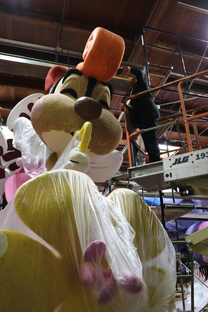 La carroza de “Bee the Solution”, de 55 pies de largo, estará compuesta de más de 35,000 flores. Se trata de una comunidad de abejas en un campo de rosas rosadas y blancas, bordeadas por arreglos hechos a mano de lirios amarillos.